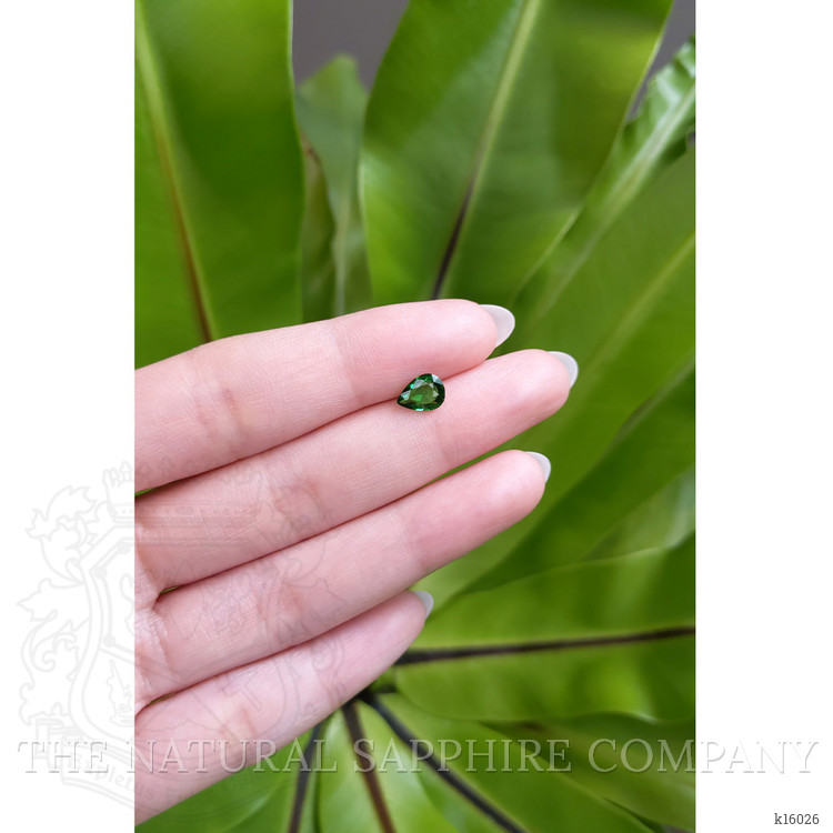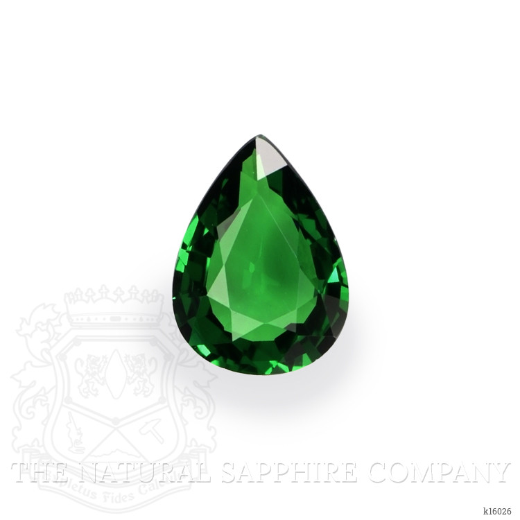 This exceptional green tsavorite garnet from The Natural Gemstone Company is a transparent 0.92 carat pear shape gem, with exact dimensions of 7.86 x 5.80 x 2.72 mm, cut in a mixed brilliant style to maximize scintillation and depth of color. The stone is graded eye clean at normal viewing distance, meaning no inclusions are visible to the naked eye, which is a premium attribute for collectors and fine jewelry buyers who value visual purity without the need for magnification. The color is described as vivid, driven by chromium and vanadium trace elements that produce the lively green characteristic of high grade tsavorite. The polish is excellent, producing crisp facet junctions and strong light return. Importantly, this tsavorite has no enhancement, a factor that carries significant weight with educated buyers because it preserves natural durability and long term color stability. The origin is East Africa, a well respected source for fine tsavorite that contributes to its market desirability and provenance value.