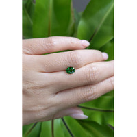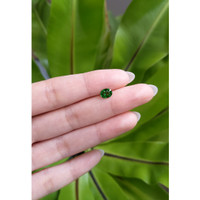 This 0.95 carat oval green tsavorite garnet presents a precise combination of weight, shape and proportion that will appeal to connoisseurs and setters who prioritize optical performance, color saturation and cutting integrity. The stone measures 6.67 x 5.34 x 3.30 mm, producing an overall depth to average diameter ratio of approximately 55 percent, a proportion that delivers a strong face up spread without excessive pavilion depth. The pavilion and crown have been executed in a mixed brilliant schema, with a traditional brilliant facet pattern on the crown to maximize scintillation, and modified pavilion facets designed to control light return and enhance color saturation. The cutter has emphasized symmetry, alignment of the longitudinal axis, and uniform girdle thickness, yielding consistent facet junctions and predictable light return across changing angles of view. The excellent polish is immediately evident on magnification and to the unaided eye, with facet planes that display crisp facet junctions and minimal surface abrasions, which preserves the tsavorite's energetic brilliance and allows the underlying color to read evenly across the table and along the length of the oval.