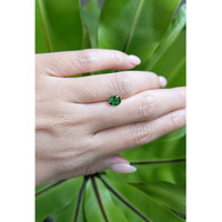 Color and clarity define the gem in complementary fashion, the saturated green tone carrying vivid intensity that is characteristic of premium tsavorite garnets from East Africa. This specimen shows a pure, saturated green without overt secondary hues, and the color is evenly distributed across the table and pavilion, which supports a balanced visual appearance in both mounted and loose presentations. Clarity is graded as very very slightly included when evaluated at eye level, with inclusions that do not materially interrupt the passage of light or the perception of color to the naked eye. The absence of any treatment or enhancement is confirmed, so the gem presents its natural material qualities without diffusion, heating, or other laboratory interventions. Taken together, vivid color, eye level clarity, and a pristine polish combine to produce strong internal brilliance and lively external scintillation, enabling the stone to act as an optical focal point in a wide range of jewelry designs.