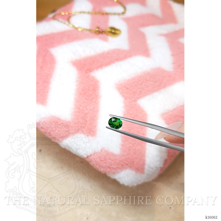 This vivid green tsavorite garnet from East Africa carries the weight of ancient gem lore, and yet it arrives with a freshness that suits both modern and heirloom designs, The Natural Gemstone Company proudly presents this transparent 0.97 carat oval shape tsavorite garnet, its dimensions are 6.42 by 5.16 by 3.88 mm, its color intensity is vivid, its clarity grade is very slightly included as evaluated at eye level, its polish is excellent, and it has received no enhancement. Tsavorite has long been prized by collectors and royal patrons for its lively, springlike green, and this example recalls that rich history while offering an intimate, wearable scale for rings, pendants, and bespoke settings. The oval silhouette and the stone size combine to create a classic presence that is both refined and enduring, a gem that will feel at home in an antique inspired setting as easily as it will anchor a contemporary minimalist design.
