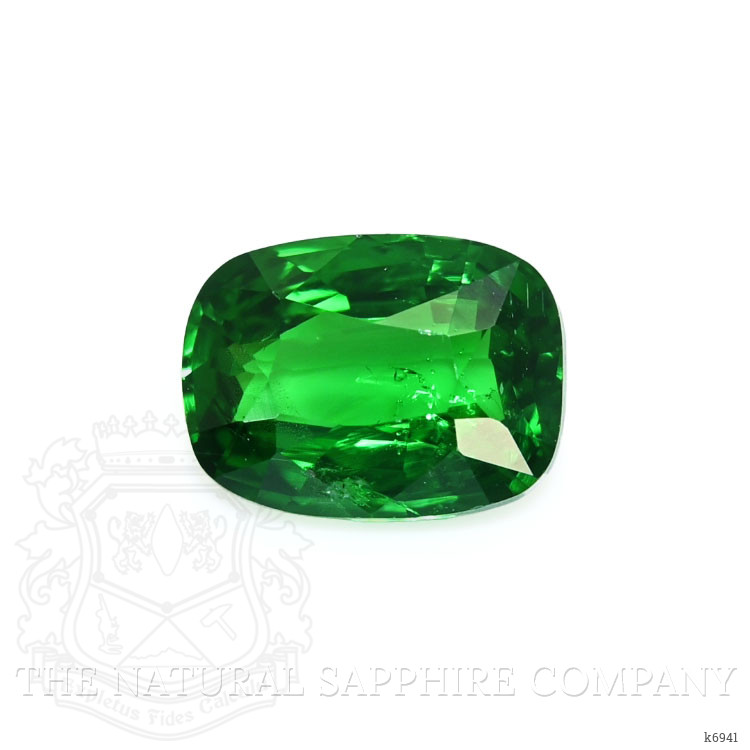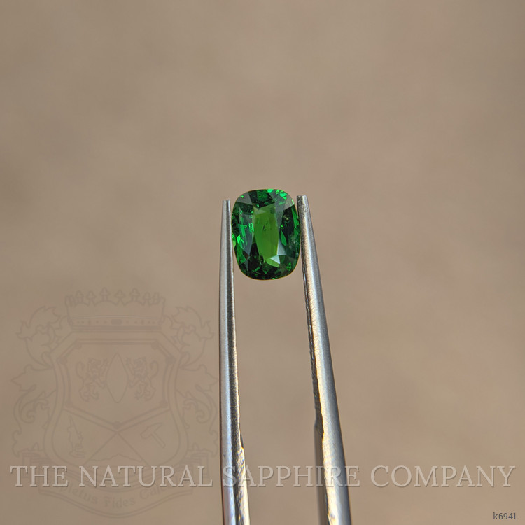 In a dance of light and shadow, where dream and reality entwine, lies a gem that tells tales of ancient earth and eternal love. Behold a transparent green tsavorite garnet, cradled by the essence of nature's most vivid mysteries. Born from the mystical heart of Tanzania, this 1.00 carat cushion-shaped wonder draws you into an emerald sea that whispers of lush forests and serene landscapes, each facet gleaming like a promise.