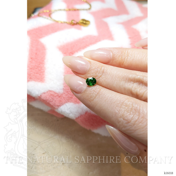 If you are searching for a single, unmistakable gemstone that completes an engagement ring, announces a milestone, or occupies a central place in a curated collection, this 1.01 carat oval green tsavorite garnet answers that need with confidence. The Natural Gemstone Company presents a transparent oval tsavorite measuring 6.32 x 5.03 x 4.24 mm with a mixed brilliant cut that has been executed to maximize light return. Its vivid color intensity delivers the rich, lively green that collectors and brides alike seek, while the excellent polish brings a crisp, lively surface that enhances every facet. Evaluated as slightly included at eye level, the clarity of this stone reads as beautifully clean to the naked eye, allowing the green to glow without distraction. Sourced from East Africa and carrying no enhancements, this tsavorite is a natural, honest choice for anyone who values provenance and authenticity.