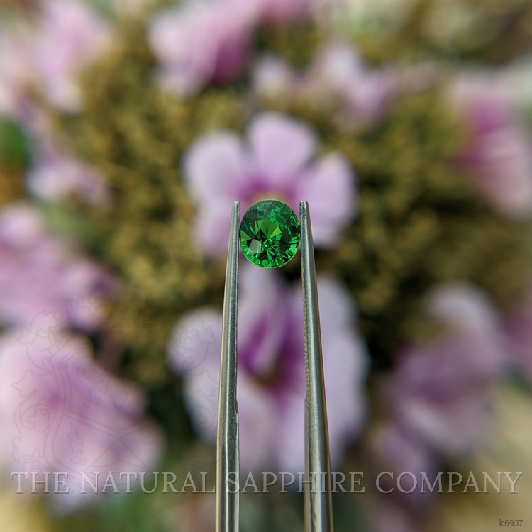 The Natural Gemstone Company presents this distinctive green tsavorite, with dimensions of 6.06 by 5.36 by 4.34 mm, which stands as a testament to nature's prowess and meticulous human touch. Its mixed brilliant cut mirrors the hands of skilled artisans who worked with patience and precision to unlock the gem’s potential. As one gazes upon its vivid color intensity, they are immediately drawn in, capturing the serene elegance that transcends mere aesthetics. The gemstone's clarity grade of very slightly included, evaluated at eye level, underscores its near-pristine charm, enhancing its allure and inviting admirers to lose themselves in its depth.