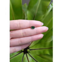 This listing presents a transparent 1.09 carat oval tsavorite garnet, with exact dimensions of 7.42 by 5.41 by 3.14 millimeters, cut in a mixed brilliant style to emphasize both color and return of light. The length to width ratio is approximately 1.37 to 1, a proportion that reads as a balanced oval on the finger, and the measured depth equates to approximately 48.97 percent of the average diameter, a deliberate shallow pavilion profile that maximizes face up spread while maintaining a strong optical performance. The cutting schema follows a modified brilliant philosophy, with a brilliant crown arrangement combined with a pavilion that incorporates additional fine facets to tune light return to the refractive index of grossular garnet, which typically ranges near 1.740 to 1.760. The gem presents as eye clean when evaluated at typical viewing distances, with no inclusions visible to the unaided eye, and it carries an excellent polish throughout, including well defined facet junctions and a precisely rendered table plane. There has been no enhancement to alter color or clarity, and provenance is indicated as East Africa, which is consistent with the classical tsavorite sources in the Kenya Tanzania region.