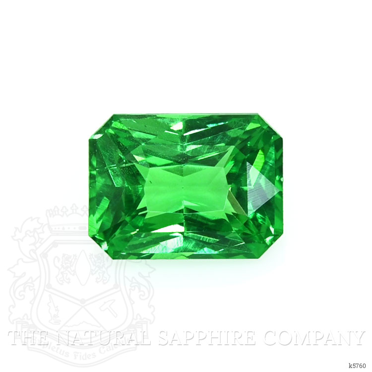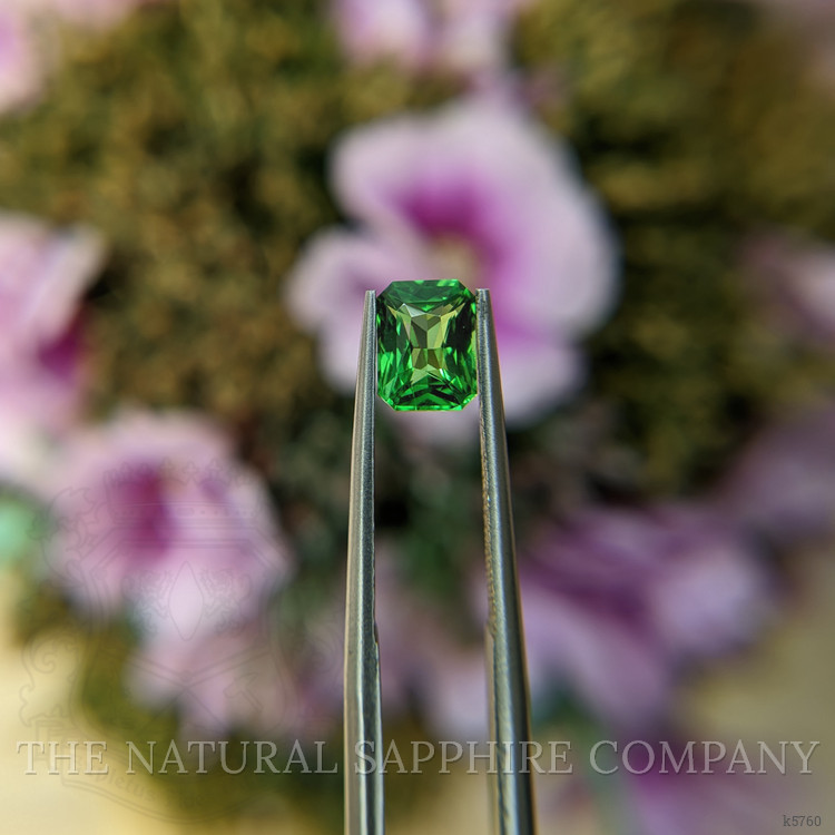 The intricacies of this stunning tsavorite garnet, available exclusively from The Natural Gemstone Company, are truly remarkable. Measuring 6.86 x 5.11 x 3.50 mm and weighing 1.11 carats, this gemstone showcases the exceptional qualities that set it apart from more common gemstones. At the heart of its allure lies the radiant shape, a sophisticated variation of the classic rectangular step cut that maximizes brilliance and intensifies color saturation. This tailored faceting style plays a significant role in amplifying the stone's vivid green hue, making it an exquisite choice for discerning buyers who understand the nuances of gemstone cuts and their influence on visual appeal.