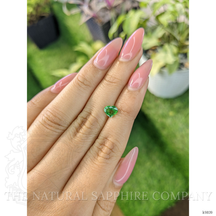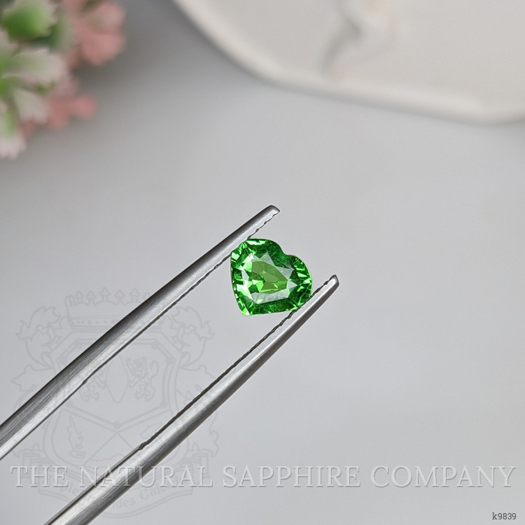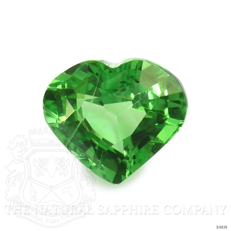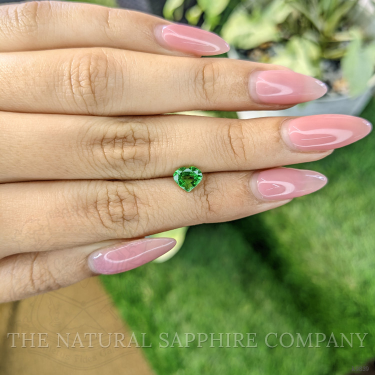 The 1.24 carat heart shape green tsavorite garnet from The Natural Gemstone Company exemplifies the perfect balance of durability and elegance, making it an excellent choice for daily wear in various types of jewelry. Crafted with precision, this gemstone measures 6.03 x 6.91 x 4.15 mm and showcases the result of expert faceting through its mixed brilliant cut. The mixed brilliant cut maximizes the gem's reflective quality, ensuring that it catches the light from multiple angles and generates a mesmerizing sparkle that is sure to captivate onlookers. This particular cutting technique enhances the stone’s natural brilliance while preserving the undulating beauty of its heart shape, a form that symbolizes love and delicacy.