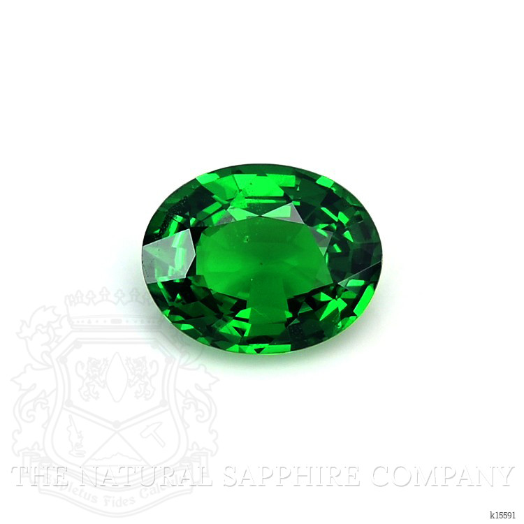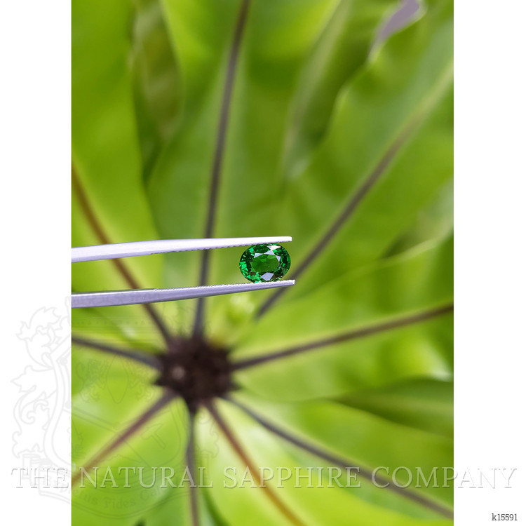 Introducing a captivating treasure from The Natural Gemstone Company, this exquisite 1.24 carat tsavorite garnet captures the essence of nature's artistry with its vibrant green hue and exceptional brilliance. Meticulously cut in an elegant oval shape with dimensions of 7.49 x 5.94 x 3.59 mm, this gemstone is a testament to skillful gem craftsmanship. Possessing a mixed brilliant cut, it radiates an intense color intensity, bringing forth a vivid green that captivates and mesmerizes.