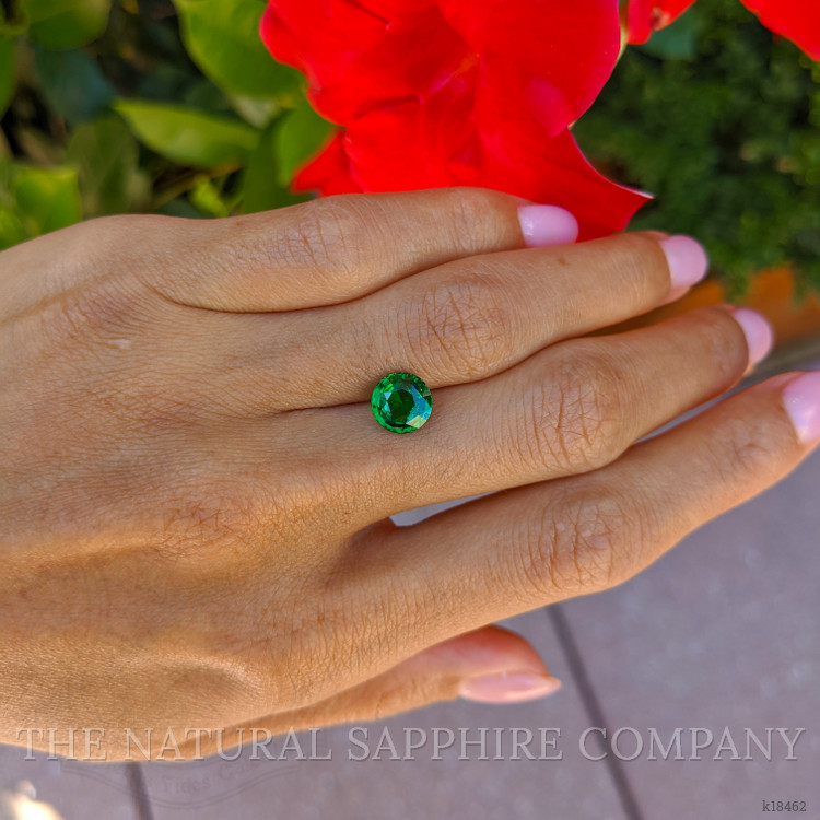 This listing presents a single, transparent 2.04 carat round tsavorite garnet offered by The Natural Gemstone Company, with precise measurements of 7.87 by 7.84 by 4.31 millimeters. The gem has been fashioned with a mixed brilliant cut, yielding balanced brilliance and color performance, and it displays an excellent polish across all facets. Clarity is graded as very very slightly included when viewed at eye level, which translates to exceptional visual clarity for use as a centerpiece in fine jewelry. The stone originates from Madagascar and has undergone heat treatment as an enhancement, a stable process applied to improve uniformity of color and overall visual appeal without affecting the fundamental physical properties of the garnet.