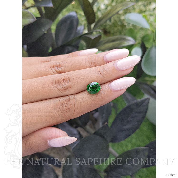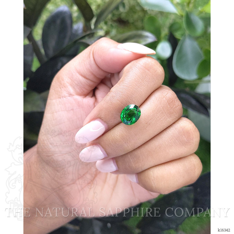The tsavorite garnet's vivid color intensity is a hallmark of its exceptional quality. Its excellent polish further enhances this aspect, ensuring that the stone not only captures but reflects light with extraordinary beauty. Unlike many gemstones on the market, this tsavorite garnet has undergone no enhancements. This ensures an untouched natural quality that is increasingly rare in today’s gemstone industry, making it a prized possession for collectors and connoisseurs alike.
