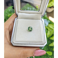 Introducing a masterpiece of nature’s most exquisite artistry: a 3.29 carat cushion-shaped green zircon. Crafted with unparalleled precision and sourced from the renowned terrains of South Africa, this gemstone stands as a testament to both rarity and opulence. With dimensions of 8.81 x 8.34 x 4.71 mm and a mixed brilliant cut, it captures light with an elegance that is unmatched. In the language of gemstones, clarity and color speak volumes, and this zircon holds a slight inclusion only visible at eye level. Its medium intense color intensity embraces a rich spectrum reminiscent of lush emerald shades, offering a visual symphony for the beholder.