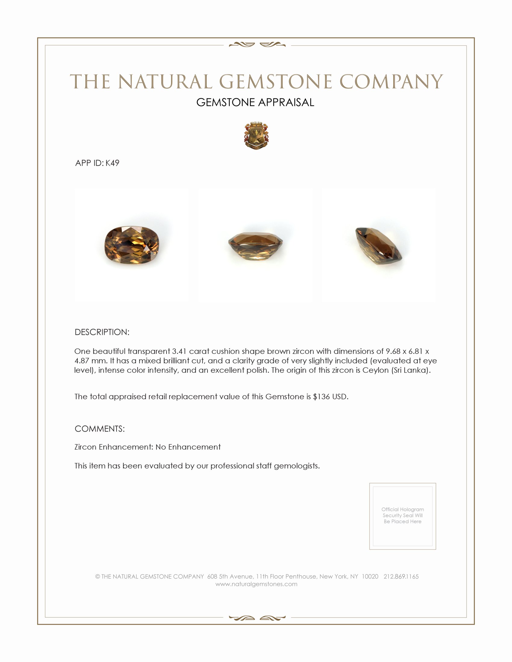Allow The Natural Gemstone Company to accompany you in celebrating life's special moments, offering you a gemstone that stands as a symbol of enduring beauty and commitment. Whether it's for an anniversary, a birthday, or simply a spontaneous expression of love, this brown zircon is a testament to elegance. Acquired from the world's most storied gemstone locales and crafted with skill and precision, it serves as the ultimate gesture to say, I love you, I appreciate you, or simply, You are special. With this gift, your search for the perfect expression of affection concludes delightfully.